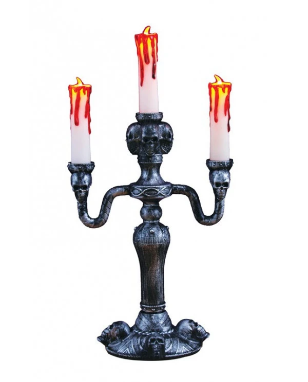 Découvrez le bougeoir lumineux spécial halloween avec une bougie LED et pile intégrée et créez ainsi une ambiance mystérieuse pour votre soirée déguisée Halloween. Le chandelier révèle un aspect argenté vieilli, sa bougie blanche LED est ensanglantée, elle s’allume une fois le petit interrupteur enclenché. Le socle du bougeoir est composé de petites têtes de morts sculptées. Le tout va animer votre salon ou votre table de manière terrifiante ! Profitez de toute notre déco originale pour halloween et faites appel à votre imagination pour instaurer une ambiance de maison hantée !