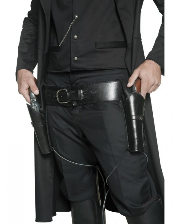 – Ceinture simili cuir avec double holster et attaches pour les jambes