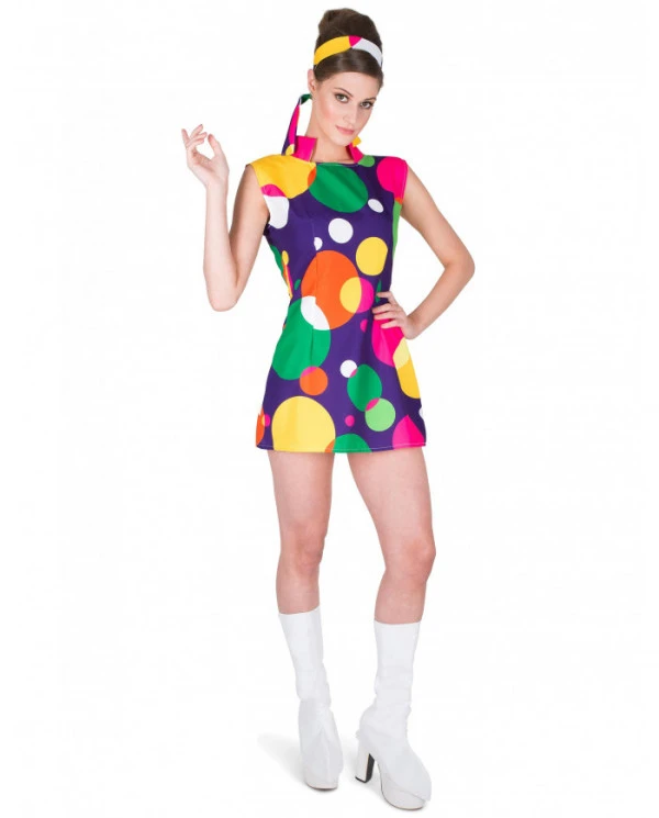 Revivez les années 70 avec ce déguisement disco pour femme ! Il contient une jolie robe multicolore très pop avec des motifs ronds ainsi qu’un bandeau assorti pour recréer la coupe de cheveux rétro. Cette robe vous illuminera à l’occasion d’une soirée déguisée thème disco ou bien le carnaval !