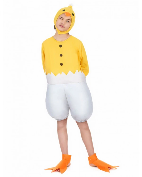 Transformez votre enfant en véritable petit poussin à moitié dans sa coquille avec ce costume de poussin. Ce dernier est composé d’une combinaison jaune et blanche, d’une coiffe jaune pour la tête ainsi que de sur chaussures oranges imitants les pattes du poussin. Le déguisement de poussin pour enfant est un costume adorable et confortable qui ravira les petits à l’occasion de Pâques par exemple !