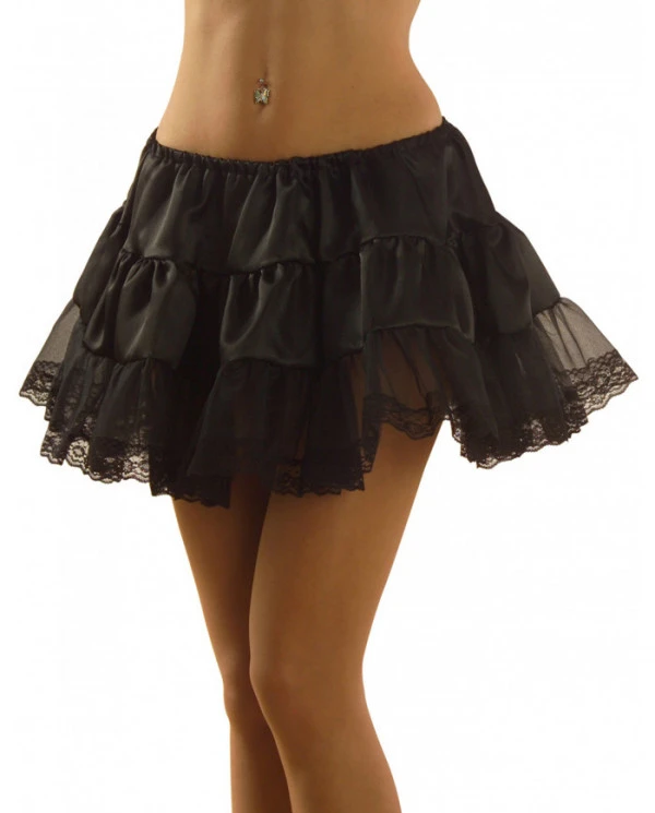 Un jupon noir en dentelle de qualité, avec une bande élastique satinée, de longueur moyenne. La taille est adaptable de S à L. Ce jupon blanc sera parfait si vous souhaitez donner du volume à votre robe ou déguisement.