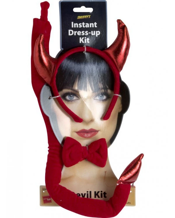 – Le kit contient : une queue, des cornes rouges et un noeud papillon