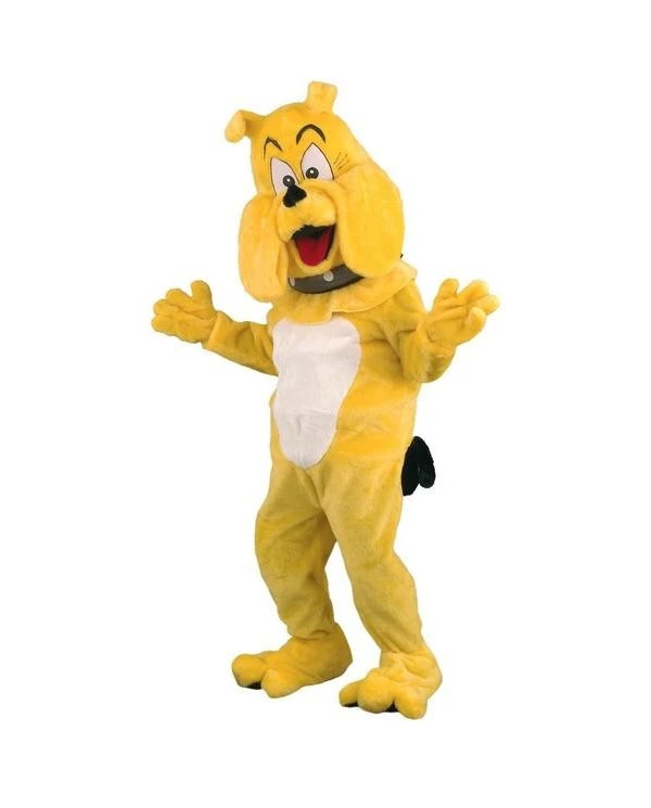 – Mascotte de chien bouledogue en peluche avec corps, tête, gants et surchaussures.