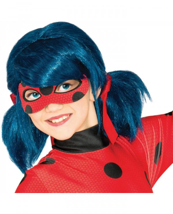 Découvrez la perruque bleue à couettes de la célèbre Ladybug pour enfant. Une perruque composée d’une frange latérale également. Cet accessoire sera le parfait complément au déguisement de Ladybug. Profitez également des accessoires bijoux de Ladybug pour créer la panoplie complète de l’héroïne du dessin animé « Miraculous : les aventures de Ladybug et chat noir »
